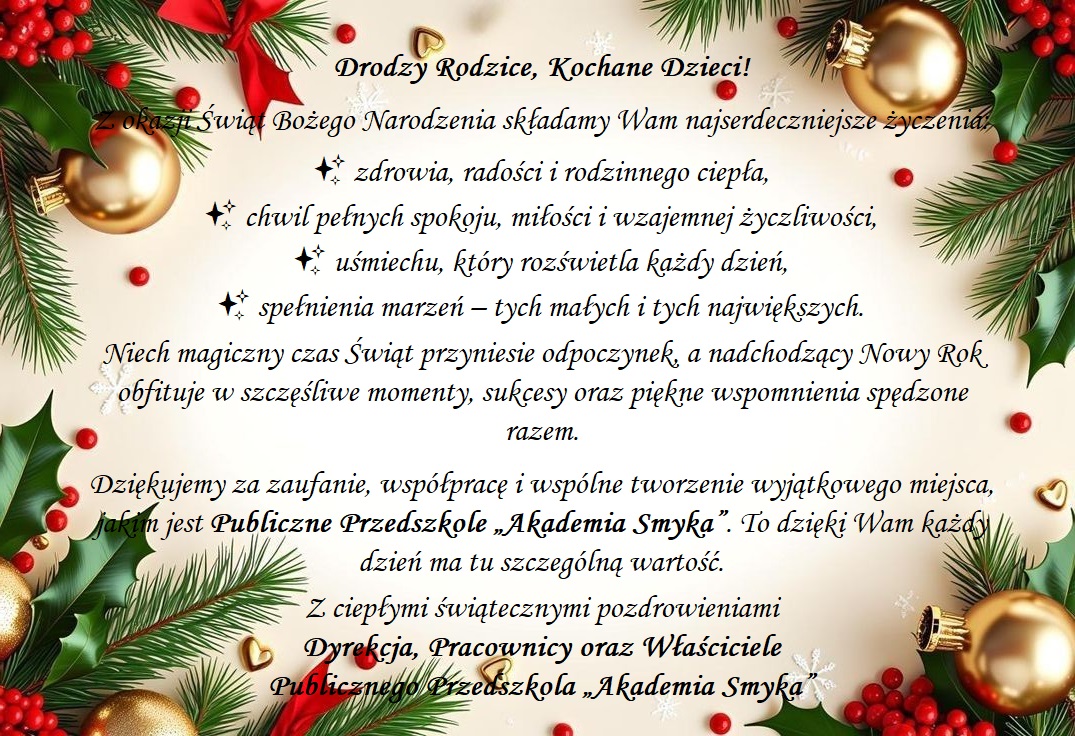 Z okazji Nowego Roku 2025, składamy Państwu najserdeczniejsze życzenia zdrowia, szczęścia oraz pomyślności. Niech Nowy Rok przyniesie Wam spokój, radość i spełnienie marzeń.